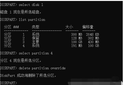 ④ 輸入delete partition override