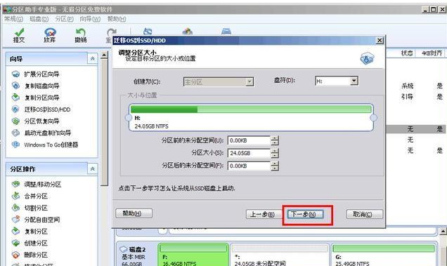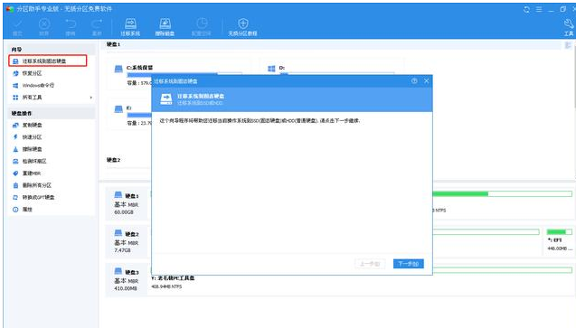 2.進入傲梅分區助手后,在界面左側欄目中點擊【遷移系統到固態硬盤】,此時會彈出一個對話框,點擊【下一步】即可。