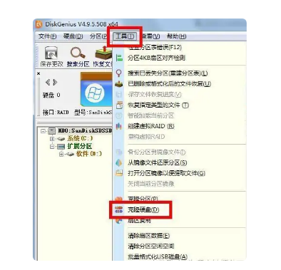 方法二:電腦安裝DiskGenius,把新硬盤分區分好區后選擇工具,點開后選擇克隆硬盤。
