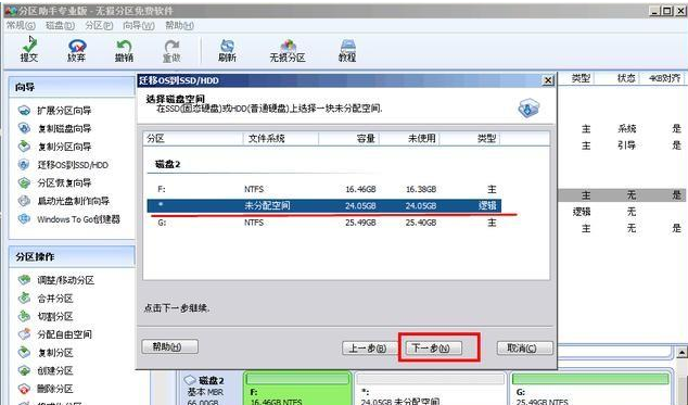 3.接下來選擇磁盤空間,選中新加裝的固態硬盤,接著點擊【下一步】。