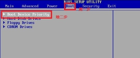 4、然后進入界面,使用方向鍵點擊【boot】,在下方找到【boot device priority】按回車。