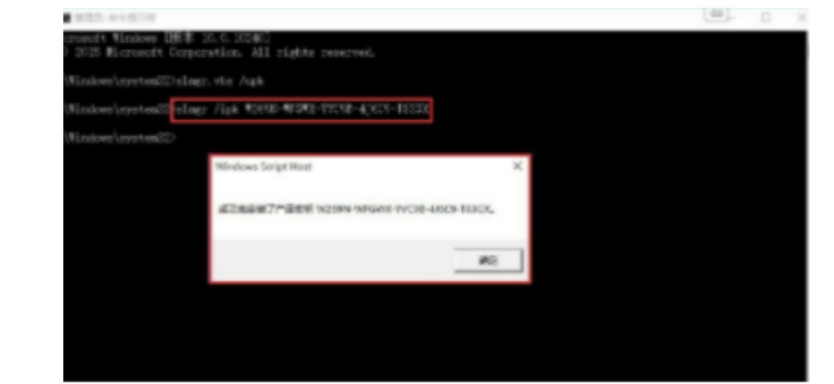 W269N-WFGWX-YVC9B-4J6C9-T83GX,并按回車鍵,會提醒:“取得成功的安裝了產品密鑰”。