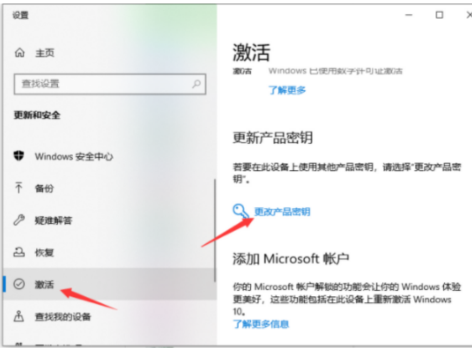 2、激活—更改產品密鑰,輸入密鑰,點擊下一步激活。