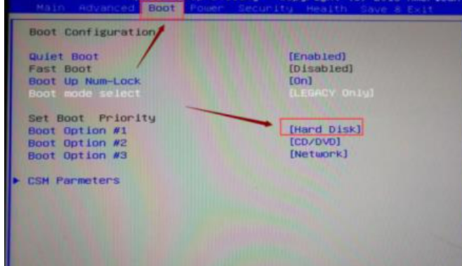2、進入BIOS后,將界面切換至“boot”窗口,回車鍵展開Boot Option #1,將第一啟動項改為安裝的系統問題,然后按f10保存。