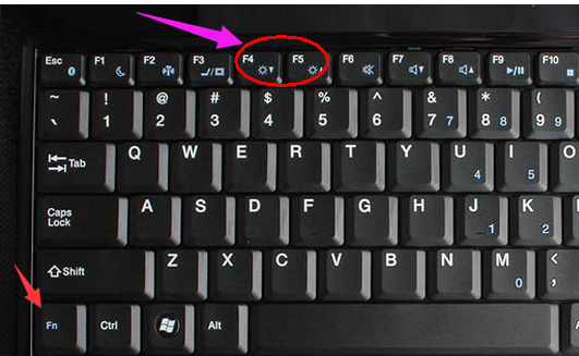 如下圖所示的就是Fn+F4鍵是降低亮度,Fn+F5是增加亮度的。