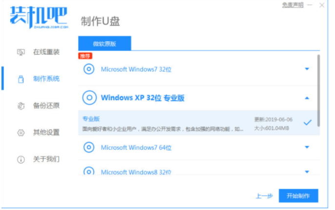 1.下載裝機吧一鍵重裝系統,插入一個8g左右的U盤到電腦上,選擇u盤重裝系統模式,點擊開始制作。