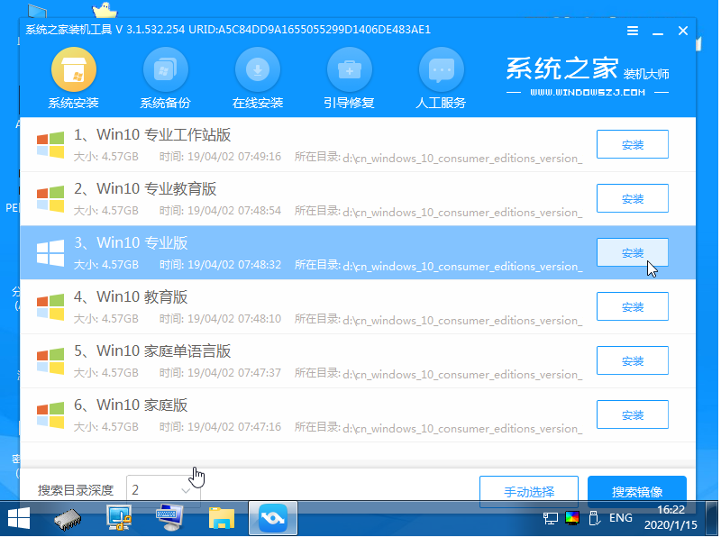 5、打開系統之家裝機工具,選擇需要的系統安裝到電腦c盤上。