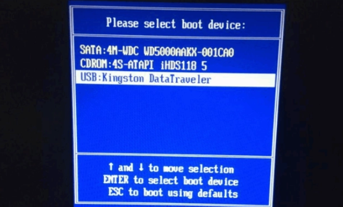 4、用u盤啟動盤啟動,在開機后不斷按啟動快捷鍵進啟動界面,選擇u盤啟動項回車確定進入到pe選擇界面,選擇第一項pe系統回車進入。