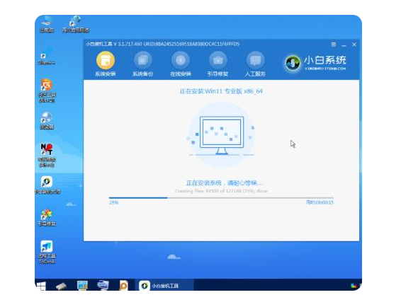 5、進入pe系統之后,小白裝機工具自動重啟并安裝win11系統。