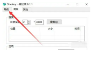 在“OneKey一鍵還原”軟件面板中,點擊【常規】打開。