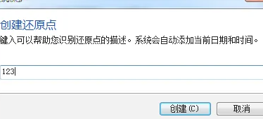 5填寫相關描述幫助我們更好的找到還原點,點擊創建即可。