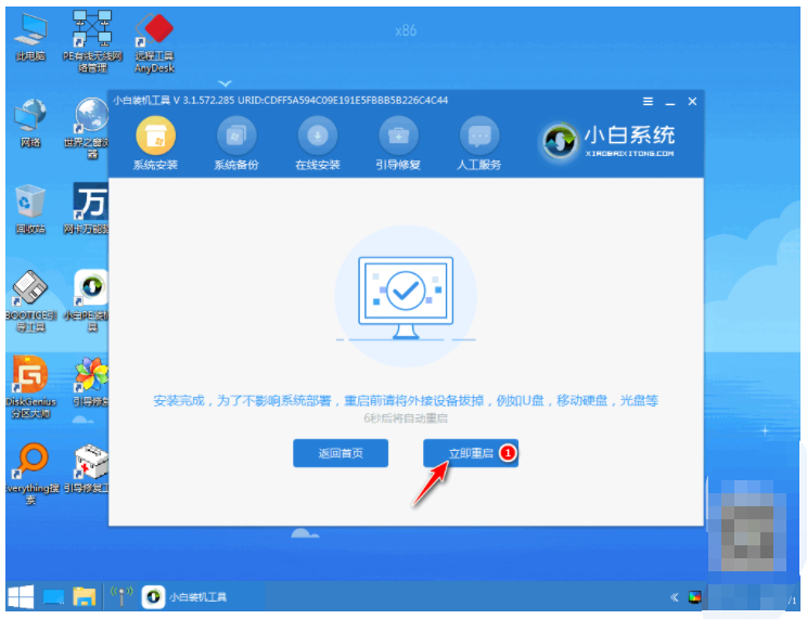 8.在安裝完成之后,我們需要再次鼠標點擊“重啟”按鈕,重新啟動電腦。