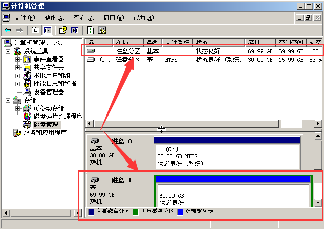 方法一:進入電腦中的磁盤管理操作