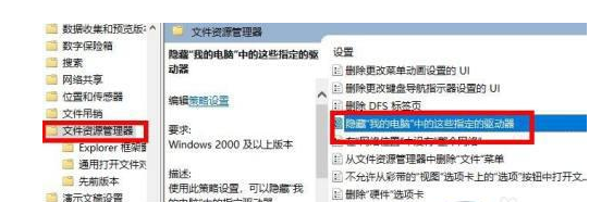 3、在本地計算機策略,依次點擊用戶配置一>管理模板一>Windows組件一>Windows資源管理器,點擊“隱藏我的電腦中的這些指定的驅動器"。