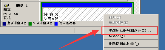 5.選擇未掛載的磁盤右鍵。選定“更改驅動器號和路徑”