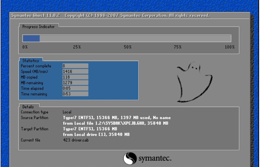 7、ghost完成后會重啟進入安裝系統階段,我們最后重啟進入系統桌面后。