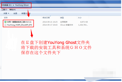 2、然后將下載的工具以及系統GHO文件保存在E盤。
