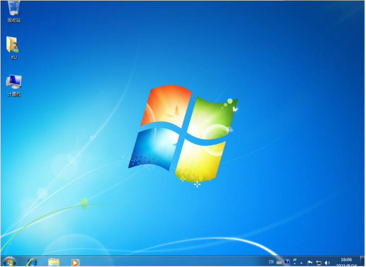 3、進入新的win7系統桌面即電腦重裝系統win7即可。