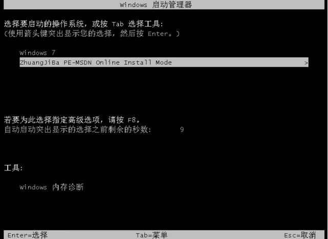 3、完成后就重啟來到啟動界面,選擇zhuangjiba pe-msdn項進入pe內。