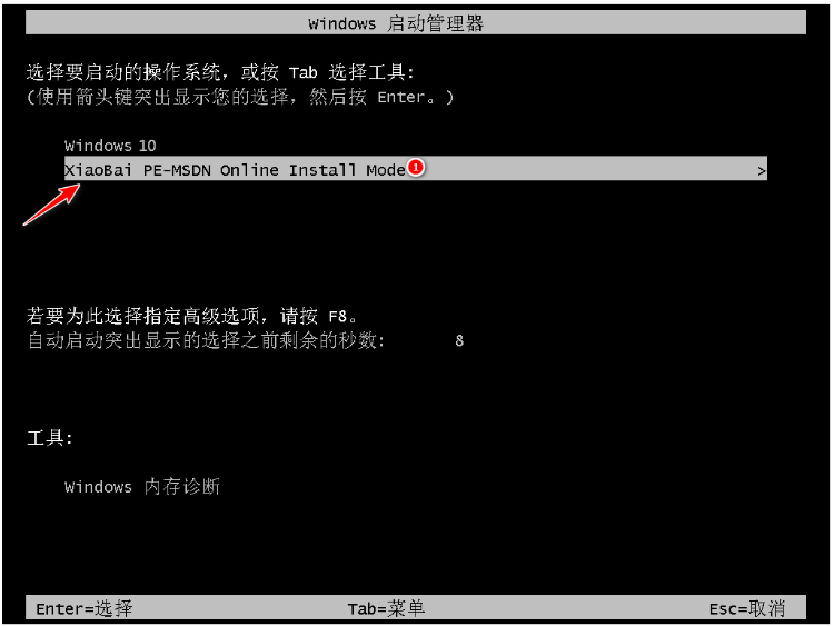 5、我們重啟電腦后選擇“XiaoBai PE-MSDN Online Install Mode”系統進入。
