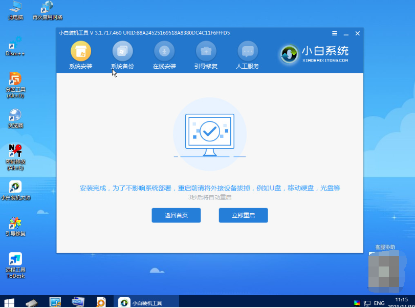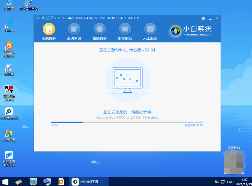 5、進入pe系統后,小白裝機工具自動安裝win10系統,無需操作。