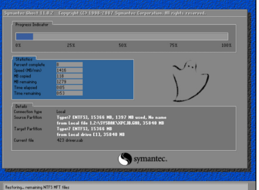 6、重啟電腦之后開始ghost還原系統鏡像。