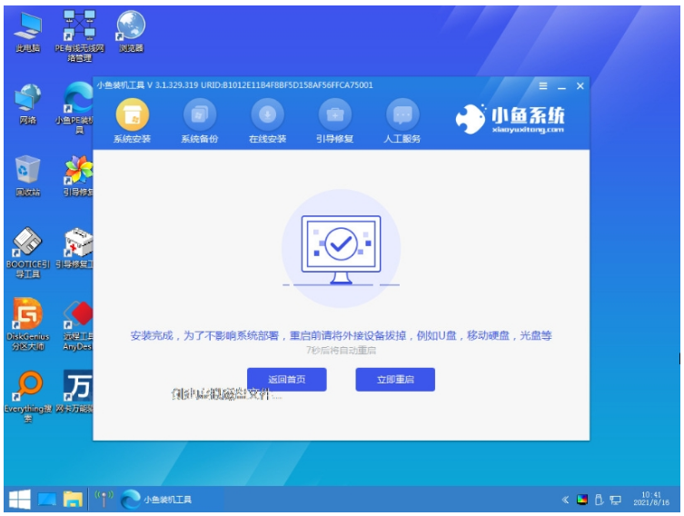 6、耐心等待安裝完成后,點擊立即重啟電腦,直至進入到win7系統桌面即說明電腦重裝系統成功。