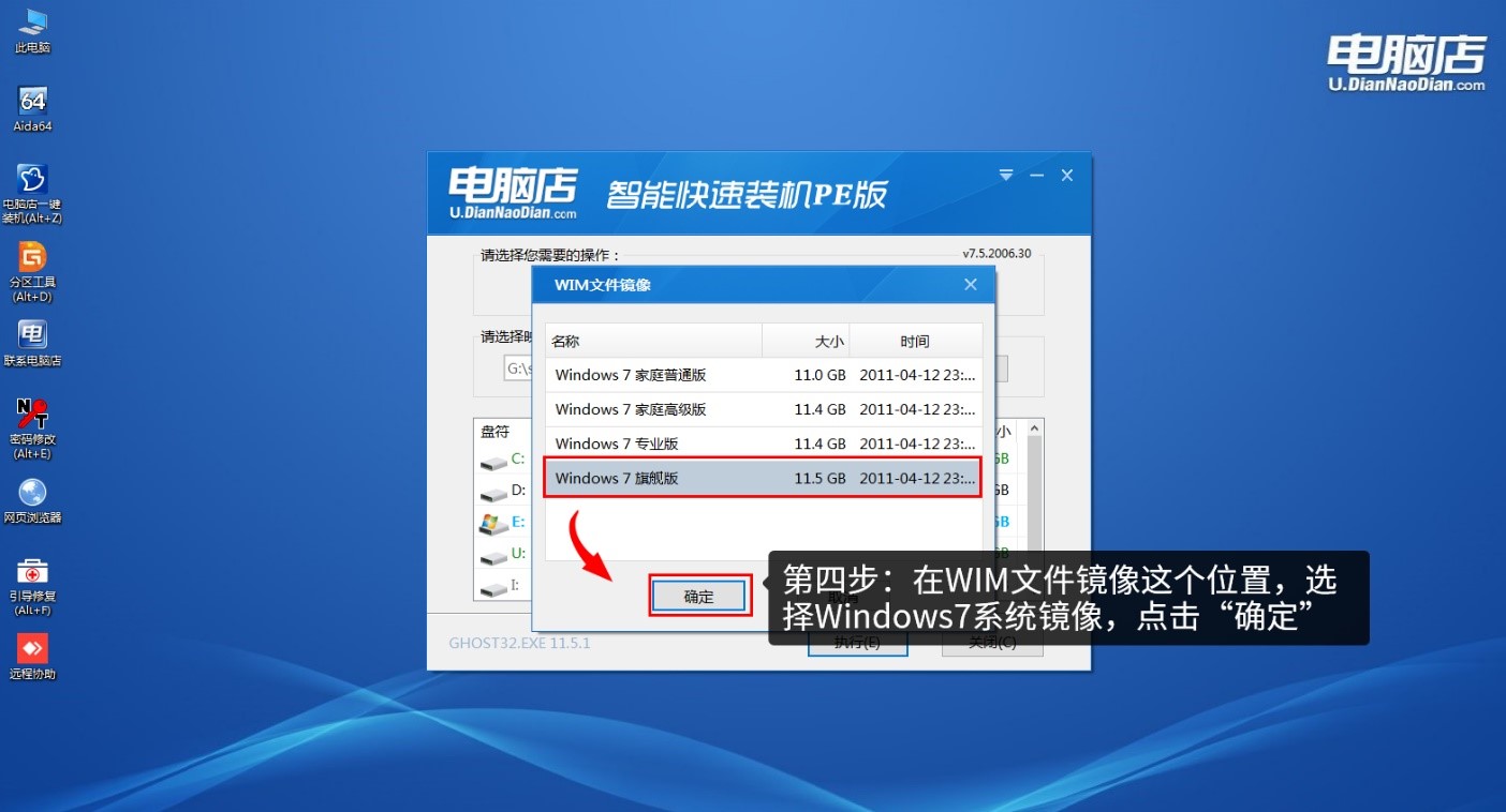 第四步、接著在WIM文件鏡像這個位置,選擇windows7系統鏡像,點擊“確定”