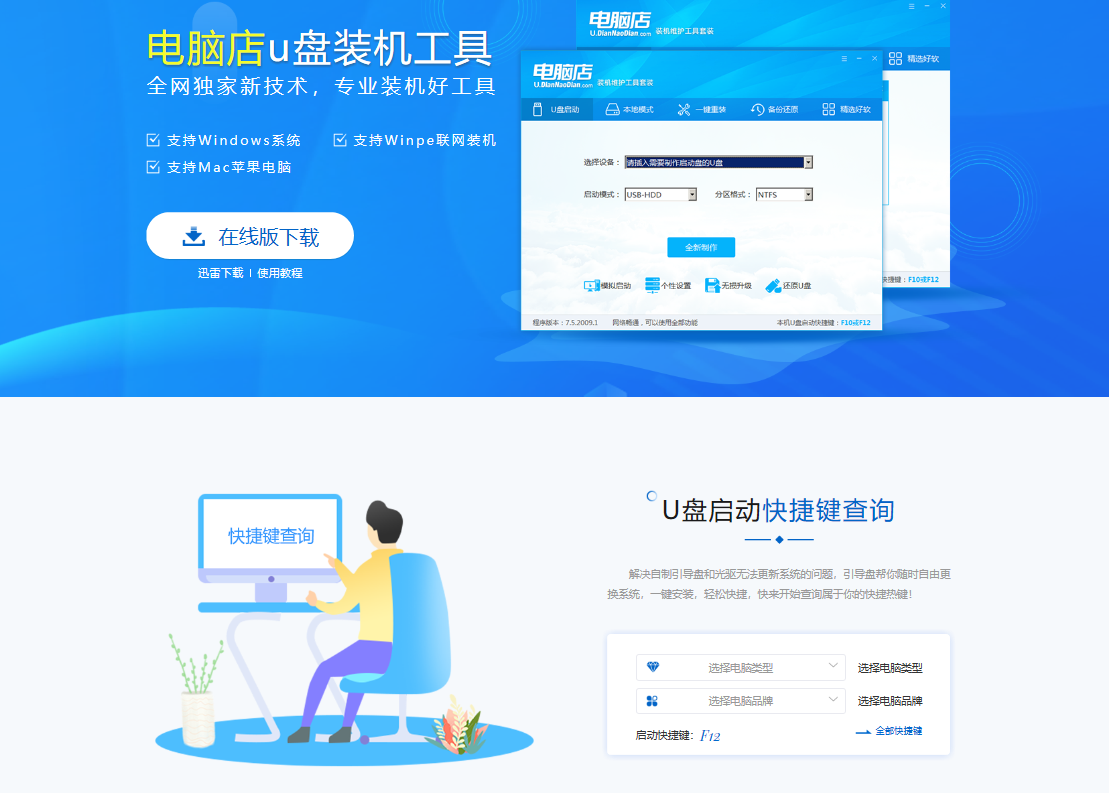 方法一:使用電腦店裝機工具的U盤啟動功能完成win10安裝