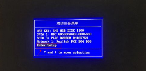 2、在啟動設備菜單窗口中,選擇“ENTER Setup”進行BIOS設置。