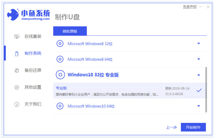 2、選擇我們所需要安裝的系統,鼠標點擊開始制作。