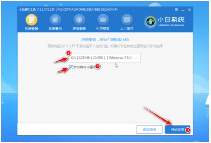 6、一般默認將系統安裝到系統盤c盤,我們點擊開始安裝就可以啦。