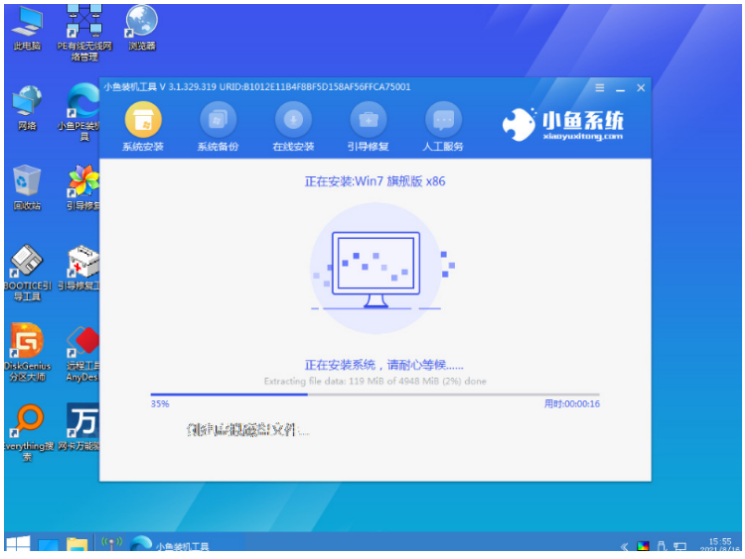6、此時在pe系統界面內,小魚裝機軟件此時將會自動開始安裝win7系統。