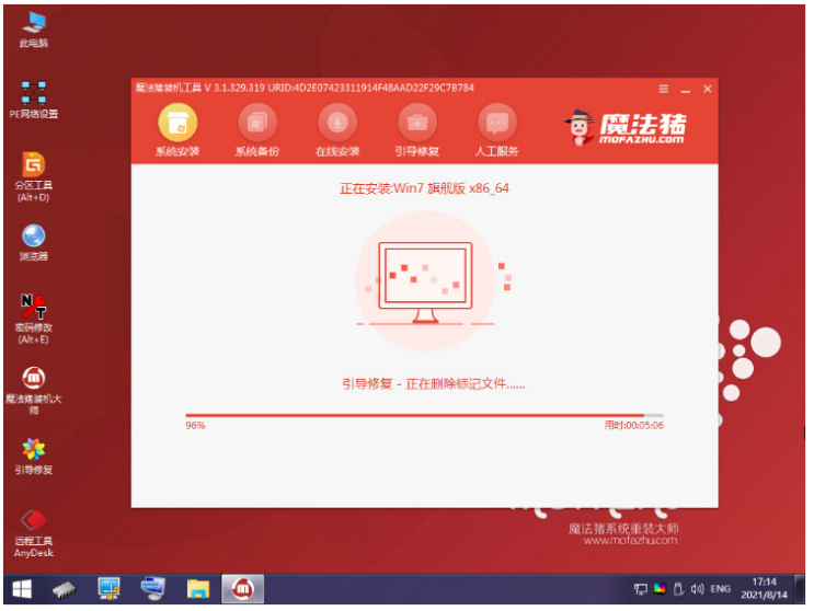 5.當電腦進入到桌面之后,此時將會開始安裝系統鏡像文件。
