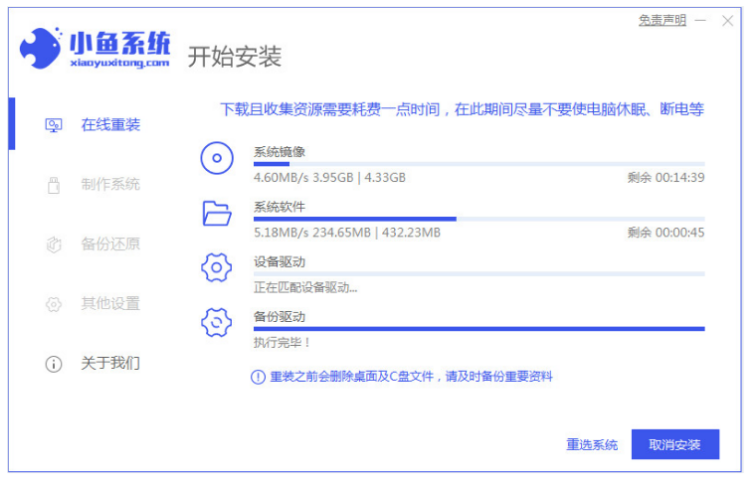 4、小魚裝機軟件將會自動安裝,直至提示系統安裝成功后重啟電腦;