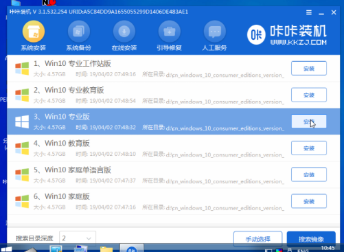 5. 在pe系統桌面打開安裝工具,選擇系統后點擊安裝。