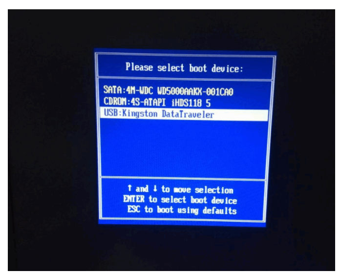 4、將U盤插入死機的電腦,在開機的過程中按下快捷鍵,選擇帶有USB開頭的選項按回車鍵進入。