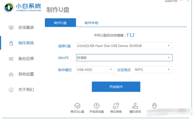 方法二:小白一鍵重裝系統軟件制作u盤重裝系統