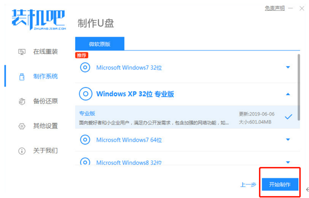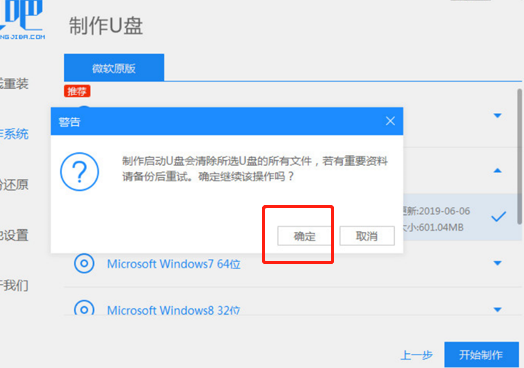 2、選擇我們需要安裝的系統版本,點擊開始制作,確認U盤內文件資料全部備份好。