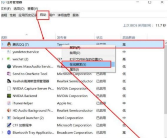 同時按下ctrl+shift+esc打開任務管理器,切換到啟動,把不需要的啟動項全部禁止,看下圖。