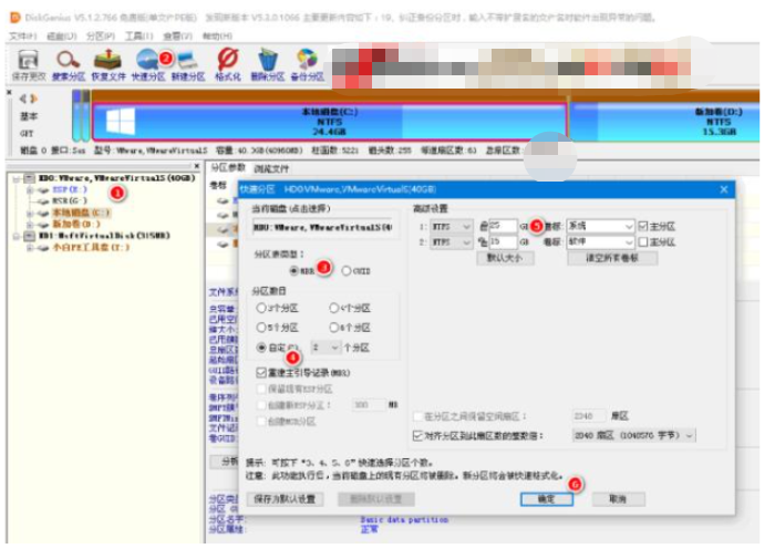 3、再點擊【快速分區】,選對要分區的磁盤,設置分區數目、分區大小以及分區類型,卷標為【系統】的系統盤建議是50G以上,選中分區類型 mbr,對齊分區選中4096扇區,分區數目根據硬盤大小決定就可。