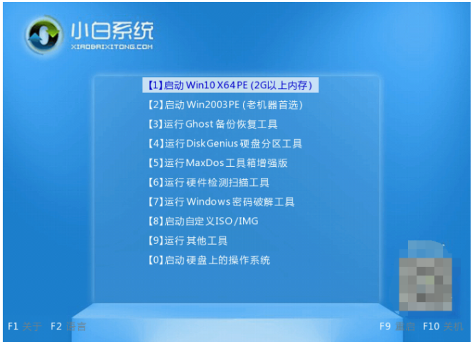 6、將u盤啟動盤插入需要安裝的電腦接口,開機按啟動熱鍵進入啟動界面,選擇u盤啟動項按回車進入到小白pe系統,打開工具繼續進行安裝,請大家耐心等待,直至進入新系統桌面即說明電腦進不去重裝系統成功。