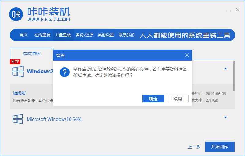 3、提示是否備份好u盤內的有用資料,確認備份好后點擊確定即可。