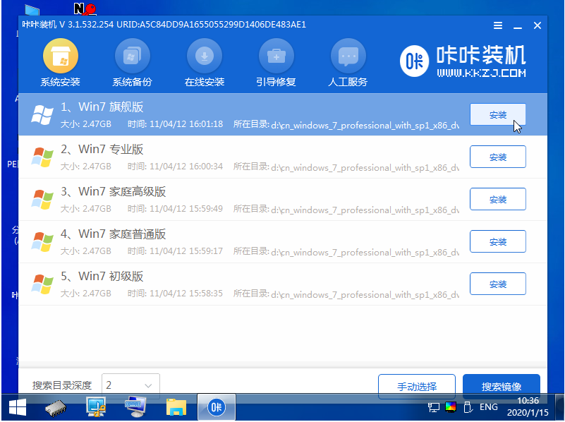 5、打開咔咔裝機工具,選擇系統點擊安裝到系統盤c盤。