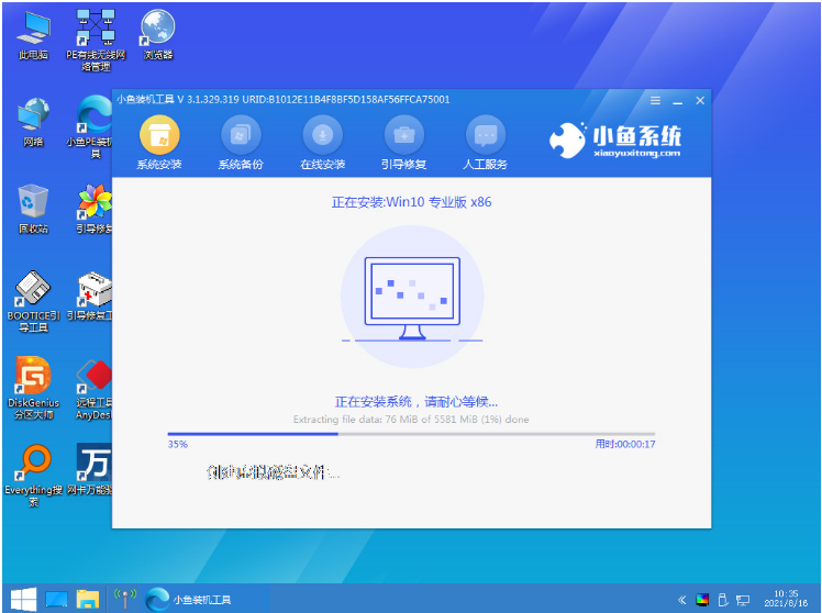 3、進入pe系統繼續安裝,最后重啟電腦進入系統重裝成功。