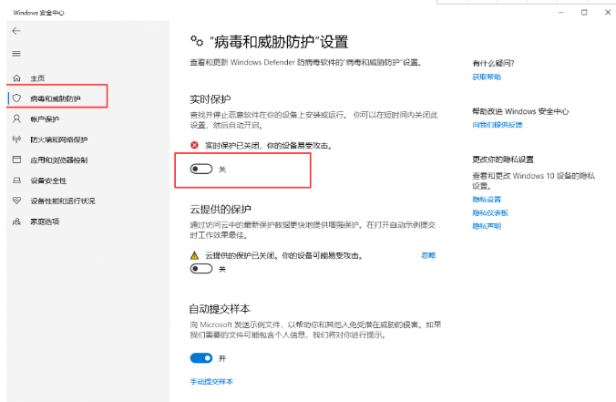 4、接著在病毒和威脅防護設置中,把即時保護關閉即可。
