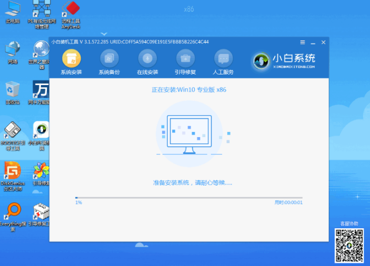 步驟五:進入pe系統后,小白裝機工具會自動開始安裝電腦系統,無需操作。