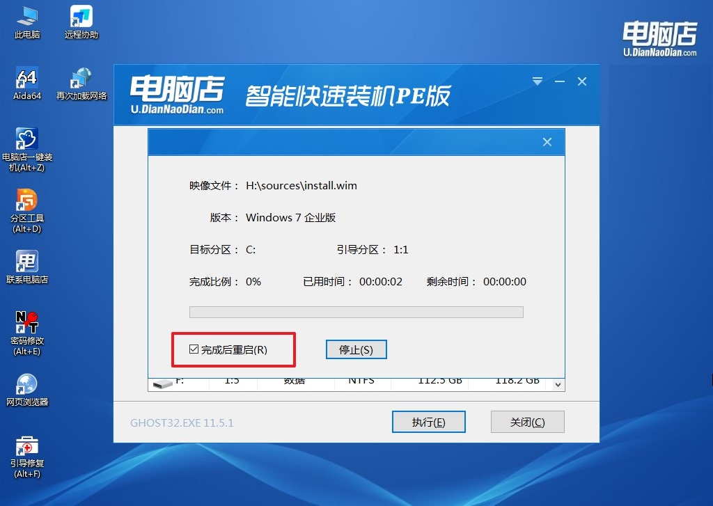 3、默認還原設置,勾選【完成后重啟】,接下來就是等待安裝完成了。