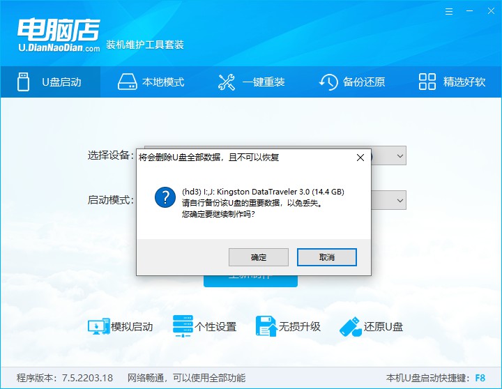 4、彈出格式化提示,點擊【確定】開始制作,等待完成即可。