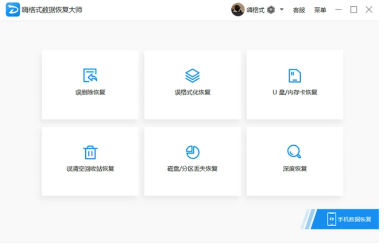 1、首先打開“嗨格式數據恢復大師”,選擇適合自己的恢復模式進入,接著選擇原數據存儲位置進行掃描。